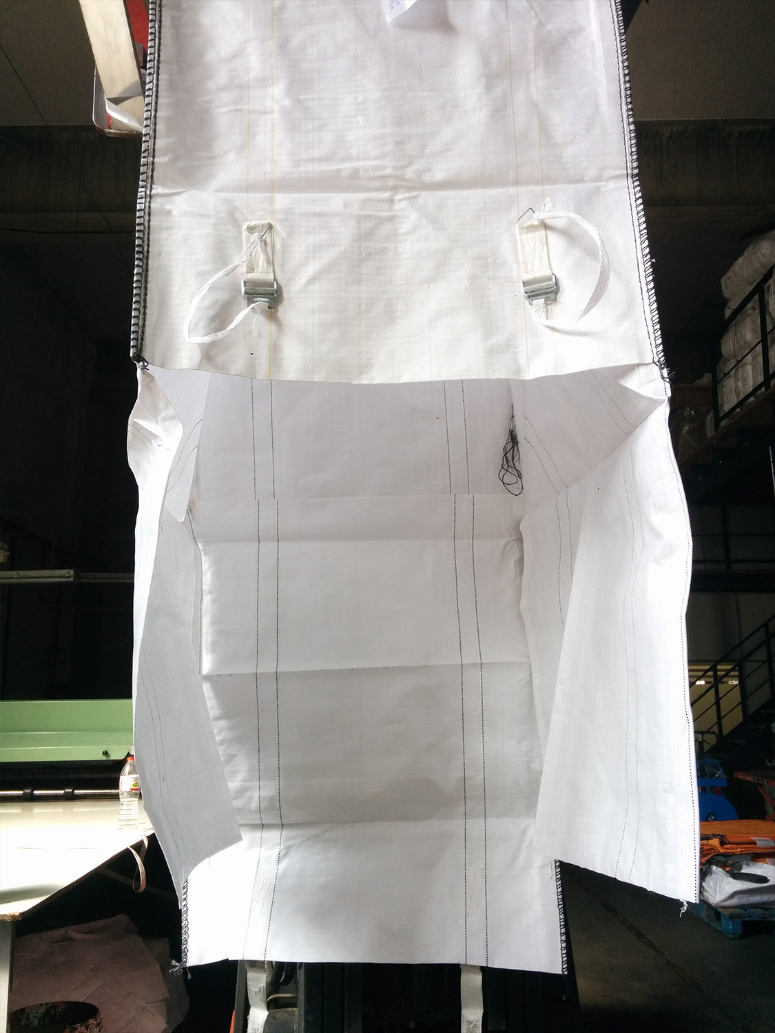 Este modelo de big bag versátil cuenta con una abertura en la parte inferior, lo que facilita la extracción y el vaciado de su contenido. El cierre lleva hebillas metálicas para poder cerrar de nuevo la parte inferior del mismo.